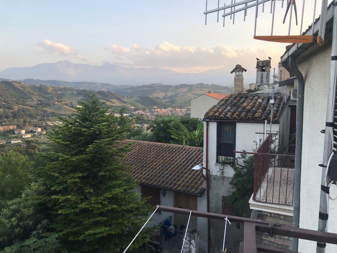 На гор вечерний силуэт в окне.